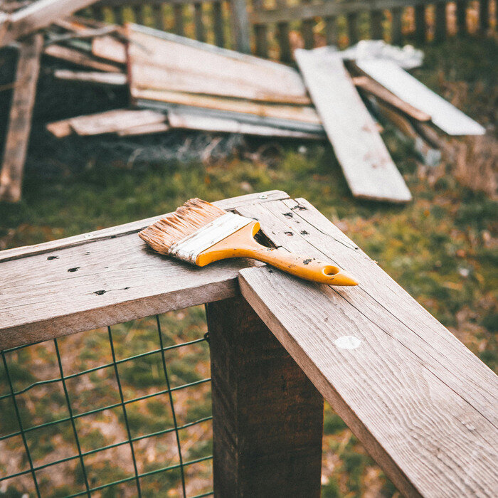 - Abschleifen der Holzbalken und anschließend Streichen der Holzbalken.