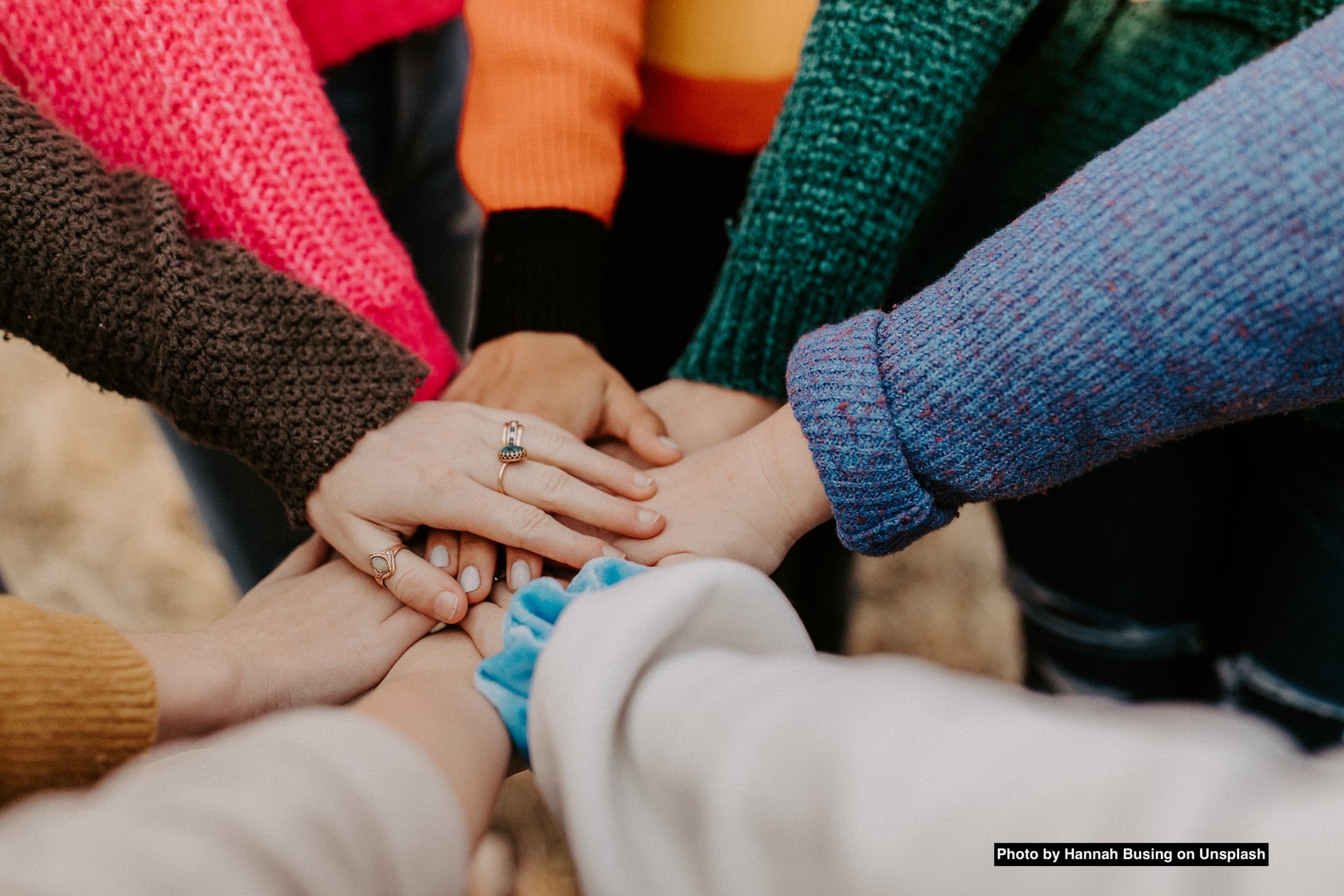 Gemeinsam Engagiert logo on a picture of hands lying on each other